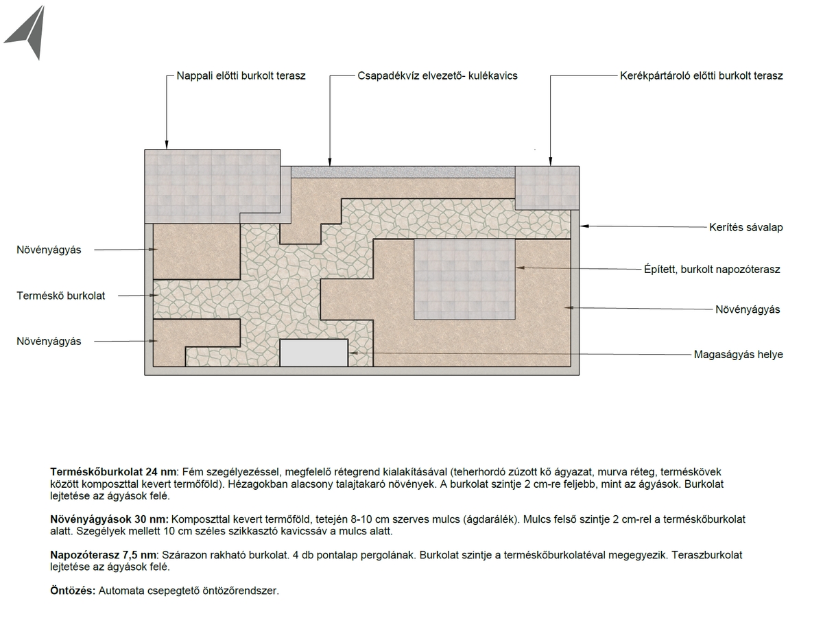 Részletes kertterv anyag- és növénykiírással